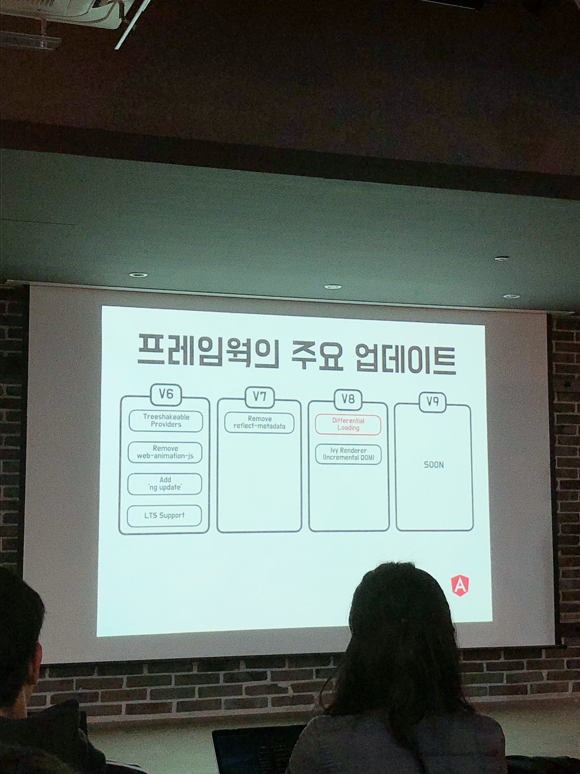 이외에 앵귤러의 주요 업데이트 내역들을 뽑아 설명해주시면서 장점으로 버전 업그레이드 할 때 이미그레이션이 간편하다는 점을 들어주셨습니다.