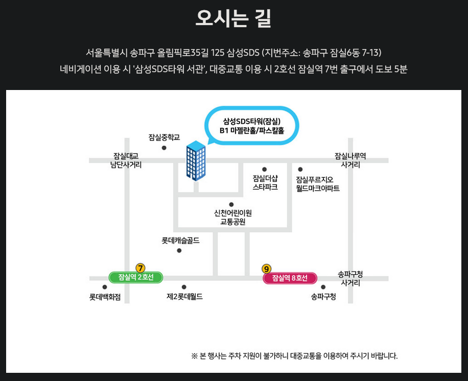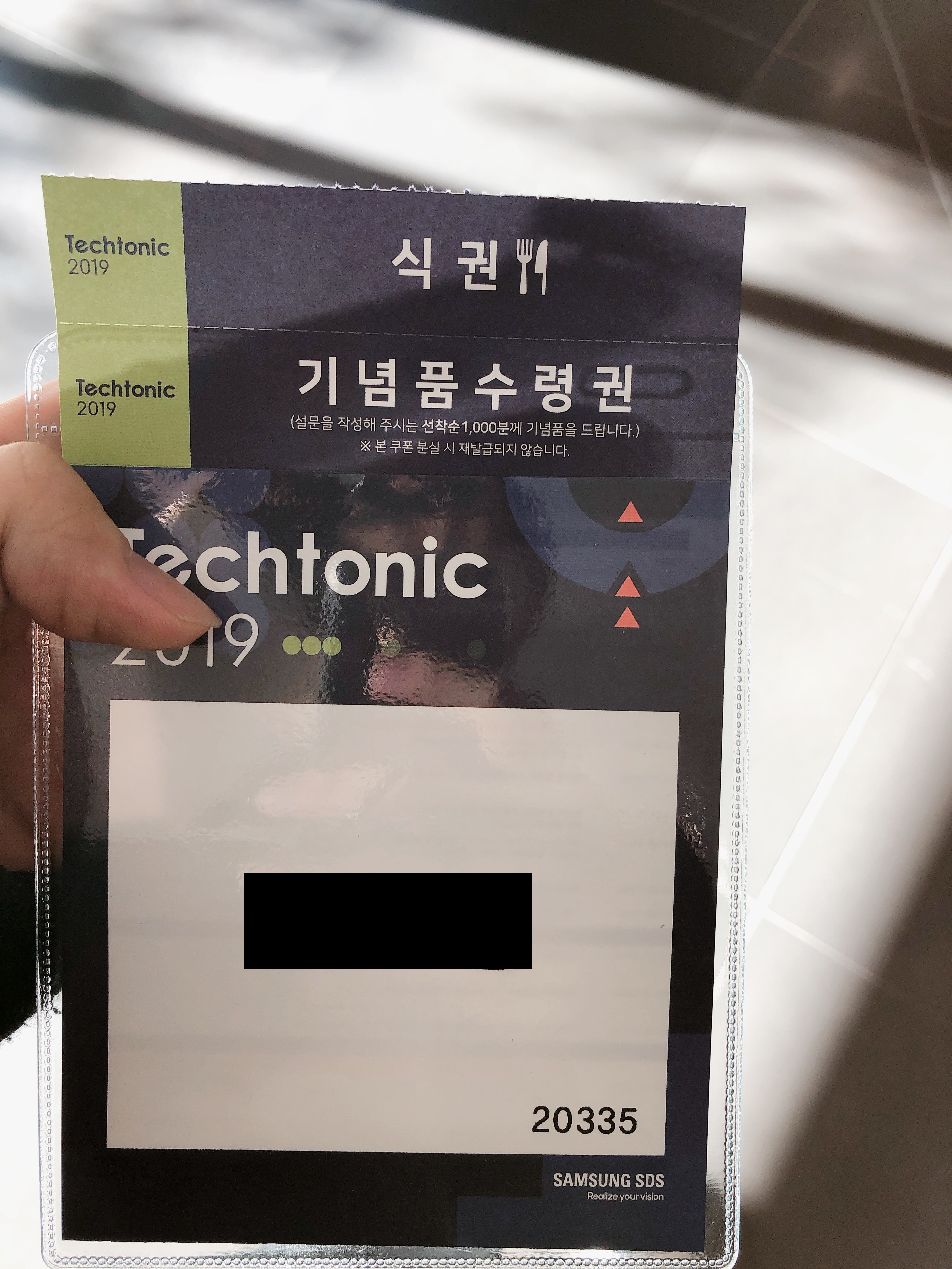 잠실역에서 내려서 대략 5분 정도 걸어가면 엄청 거대한 삼성SDS건물에서 테크토닉 2019가 열립니다. 10시에 시작인데 살짝 늦었어도 다행이 선착순으로 주는 식권과 경품응모권을 받을 수 있었습니다.