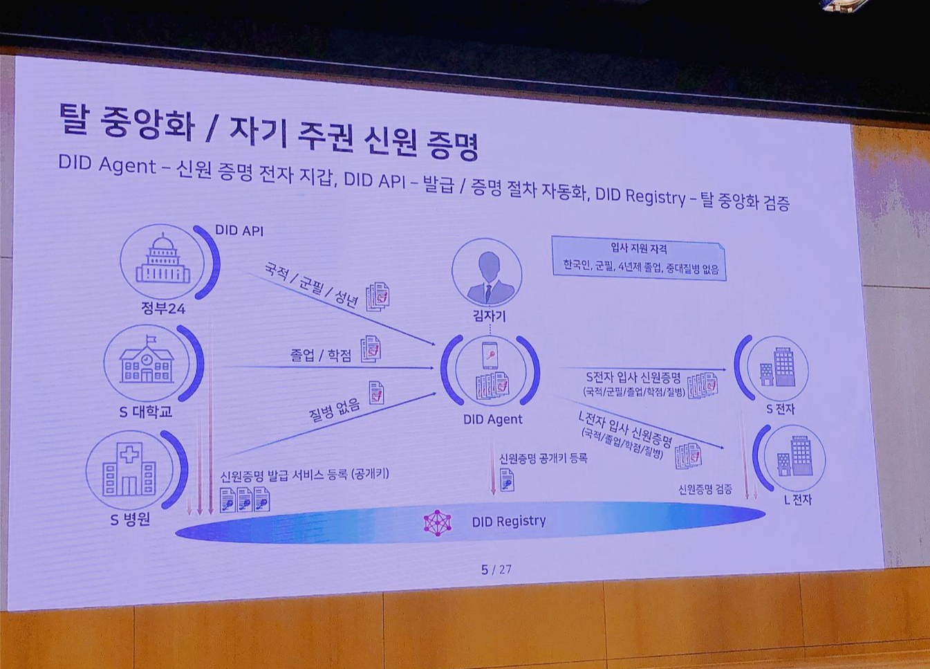 다음은 Decentralized Identity 즉 분산 ID를 활용한 모바일 신분증 서비스를 설명하는 세션입니다.