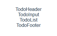 이 할일 관리 앱은 하나처럼 보이지만 사실 4개의 컴포넌트가 합쳐진 모양을 하고 있다. 맨위에 박스부터 차례대로 다음과 같은 역할을 하고 있다.