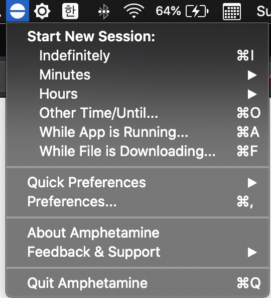 암페타민은 간단하다 맥북은 기본적으로 일정시간이 되면 자동으로 잠자기 모드로 넘어가는데 이 어플을 사용하면 강제로 always on display 상태로 사용할 수 있다.