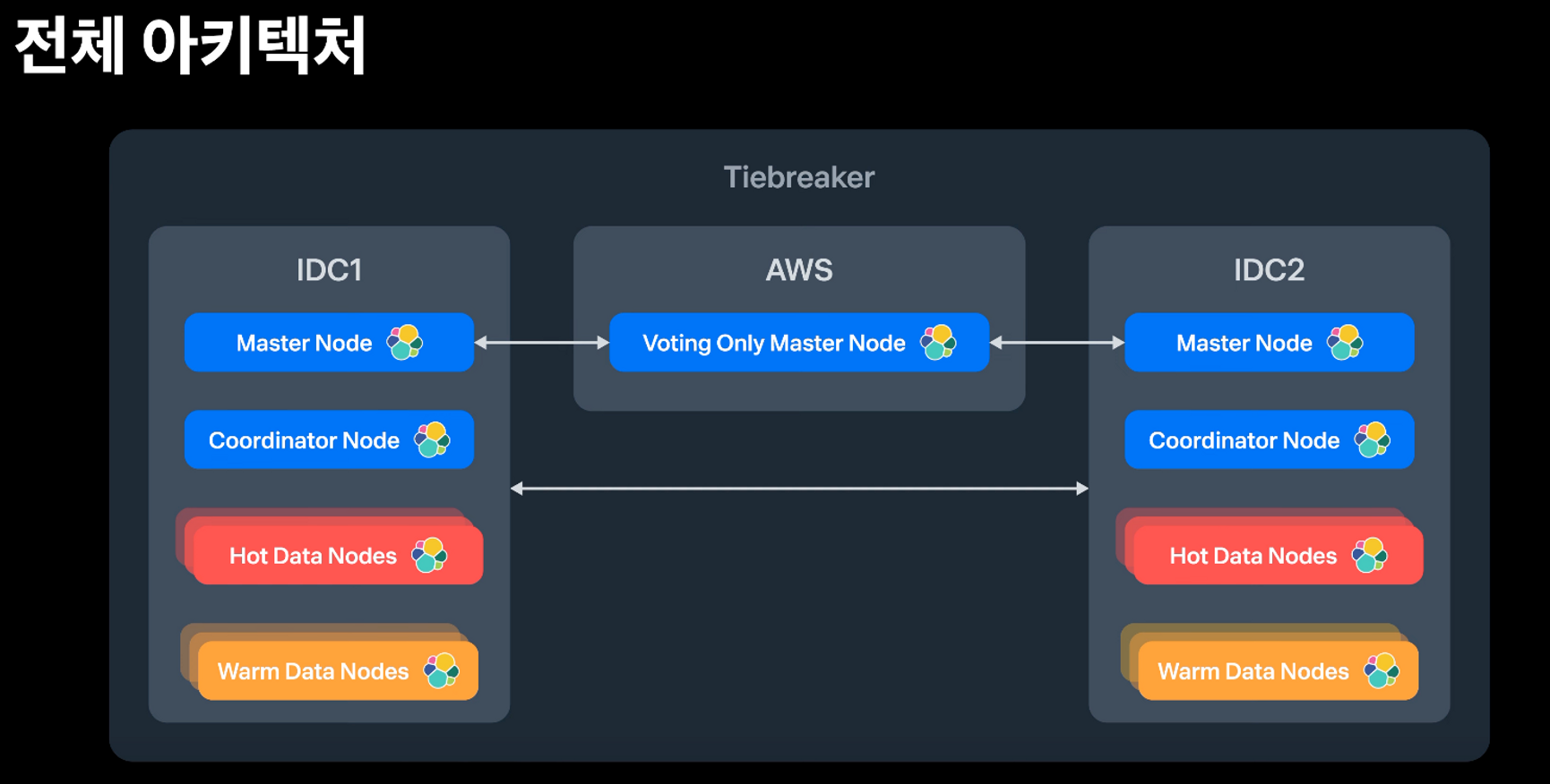 노드들이 빈번하게 통신하는데 데이터 센터 간의 네트워크 레이턴시가 높으면 클러스터 전체적으로 성능저하가 발생해 엘라스틱 서치에서는 권장하지 않음