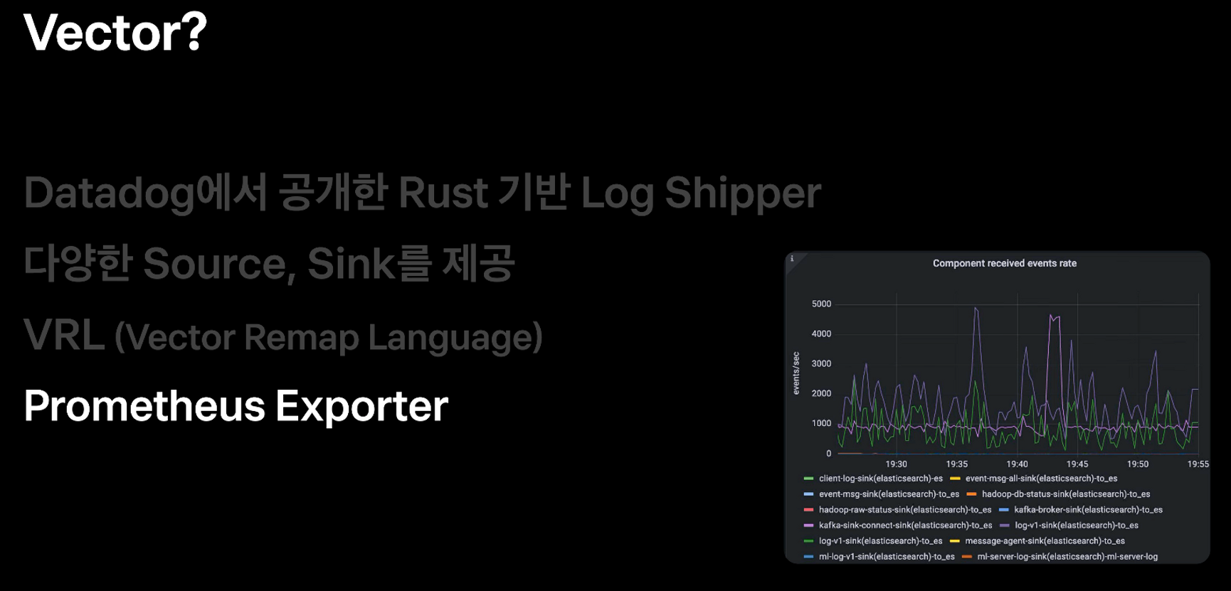 다양한 유즈케이스가 있는 fluentd지만 로그 가공이 로그스태시나 벡터에 비해 불편하다는 판단에서 최근 급성장하고 있는 vector로 선택
