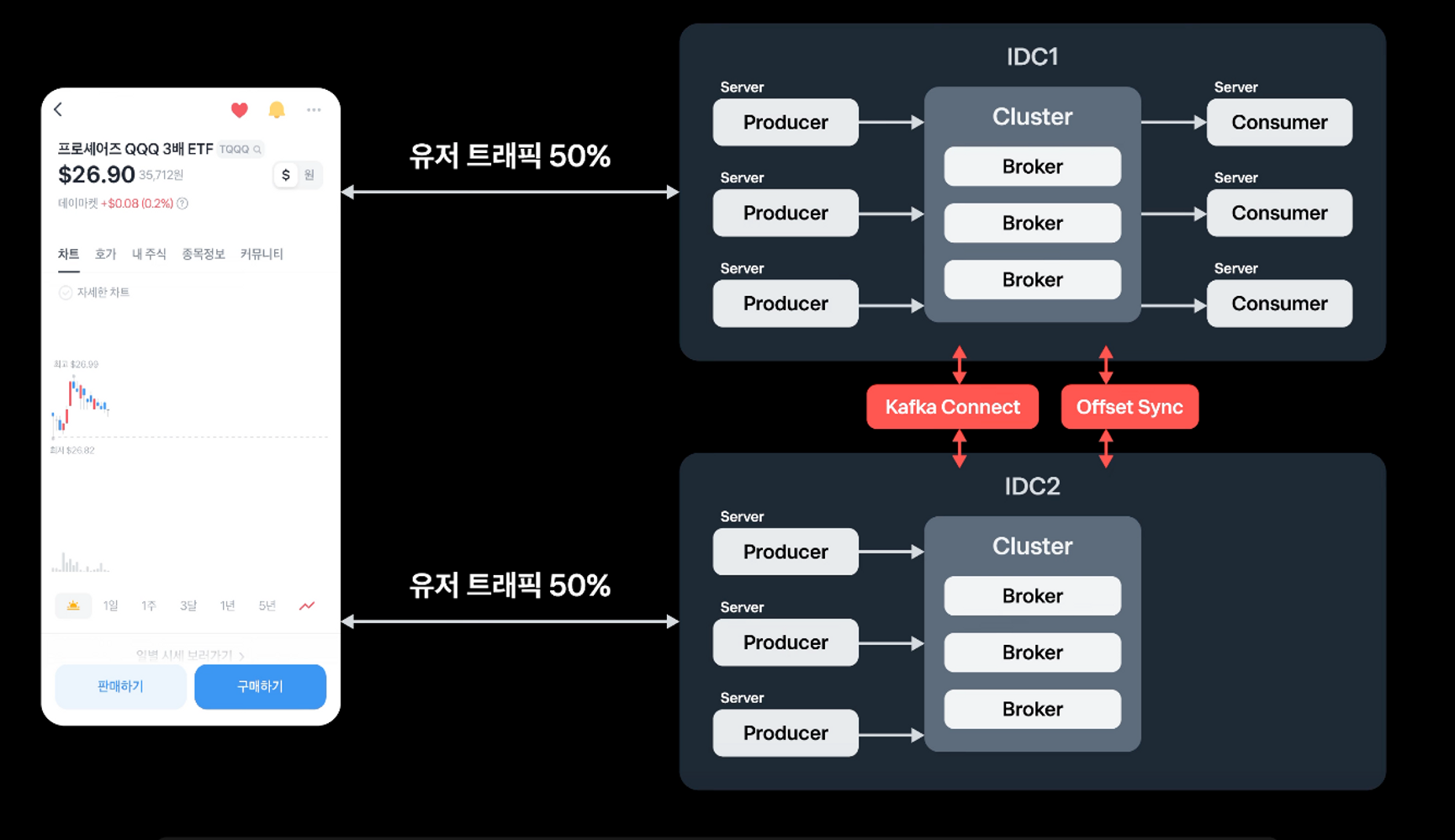 이중화를 통해 양쪽 IDC로 유저의 트래픽이 각 50%씩 나눠 가지고 있음