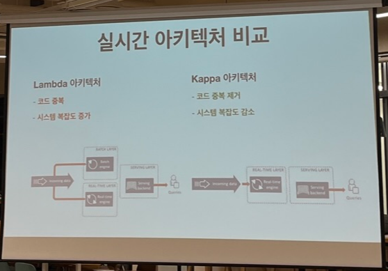 - 람다 아키텍처는 코드 중복과 시스템 복잡도 증가 하지만 카파 아키텍처는 코드 중복 제거와 복잡도 감소