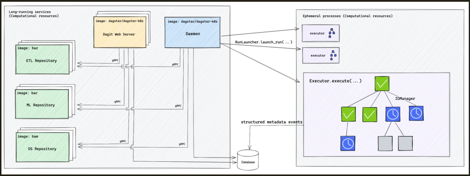 // asset example @asset def logins(website_events: DataFrame) -> DataFrame: return website_events[website_events["type"] == "login"] // op example @op def extract(): ... @op def transform(extracted_data): ... @op def load(transformed_data): ...아키텍처